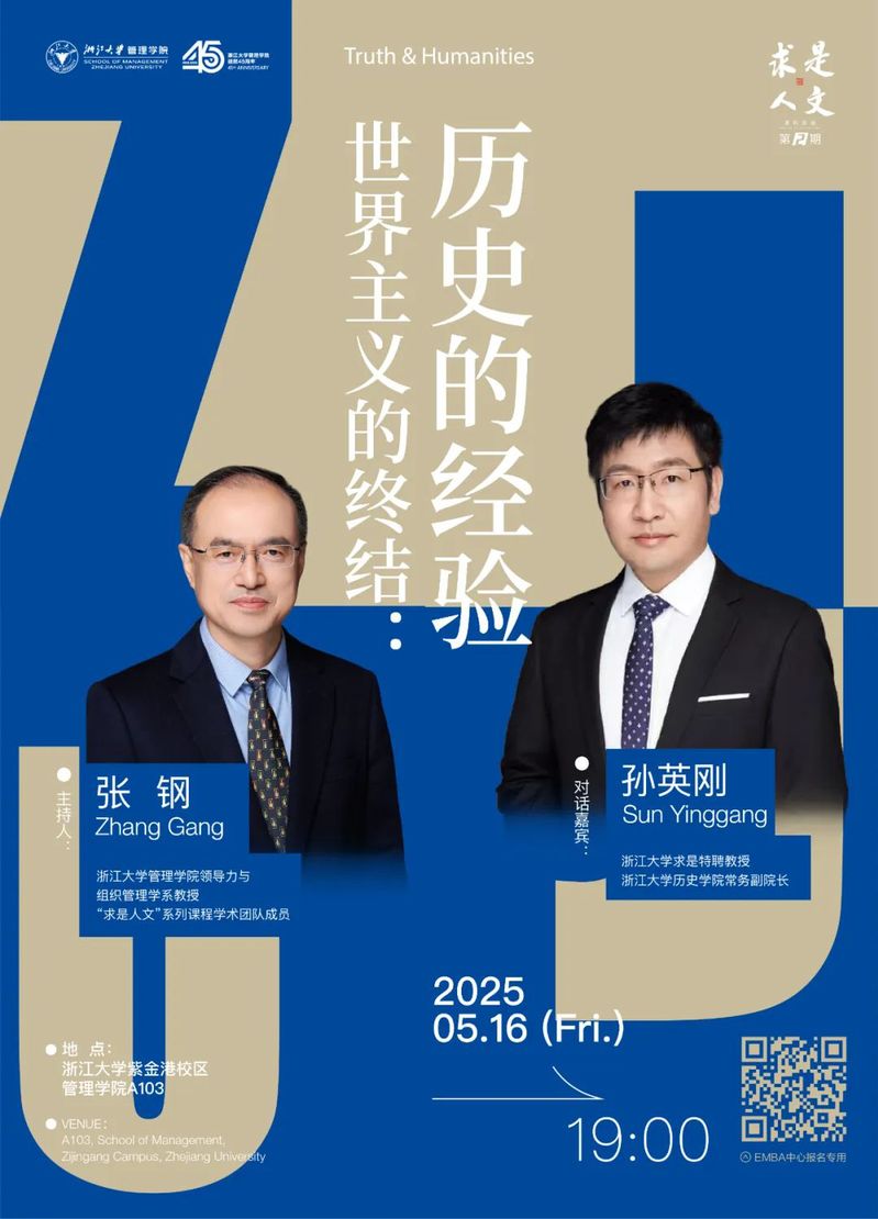 5月16日,“求是人文与新商业文明”系列讲座第二讲即将与大家见面。本次讲座,我们特别邀请到浙江大学求是特聘教授孙英刚,他将以“世界主义的终结:历史的经验”为主题,为大家带来一场深刻且富有洞见的分享。