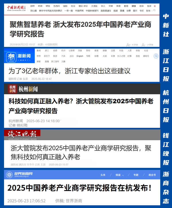 6月22日,由韦德官方站网页版主办的“浙江省老龄化与老龄产业发展论坛暨2025年中国养老产业商学研究报告发布会”举行。本次论坛聚焦“智慧养老产品”专题,深入探讨如何推动科技力量加快融入养老服务,助力智慧养老产业从“概念期许”迈向“价值创造”。中新社、浙江日报、杭州日报、钱江晚报、浙商杂志等多家媒体关注并报道了这场汇集政、产、学、研各界领袖的深度对话。