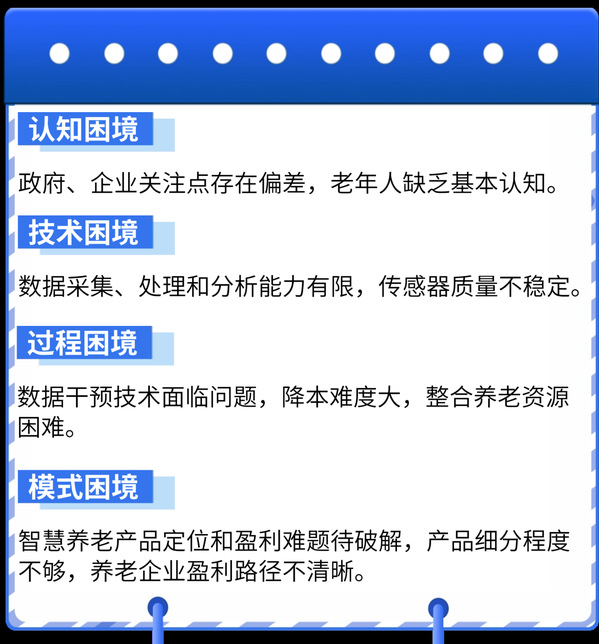 报告深入剖析了当前智慧养老产品市场“叫好不叫座”的困境,揭示了需求端“不会用、不敢用、不愿用”的认知鸿沟与供给“重技术、轻应用”的路径依赖。报告显示,当前养老产业发展面临四大困境——